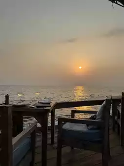 The restaurant has a great atmosphere, and with the beautiful sunset, the whole environment is romantic and chill. This view is definitely worth coming for!