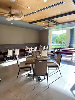 so if it's cool in the early morning, you can have breakfast on the terrace while watching the pool,