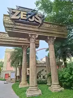 ✨️The roller coaster of this amusement park is called The Wrath of Zeus. It is fun and exciting like anywhere else. It is located in the Adventure Zone. The roller coaster is 50 meters high and can reach a speed of 110 km/h. It feels like you are floating in mid-air. This ride twists and turns, creating excitement and thrills. It is one of the most exciting rides in this amusement park.