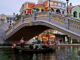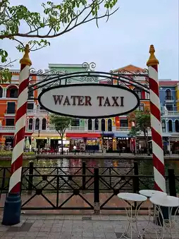 ✨️At Grand World 🌎, there is a replica of the Venice canals. Call a Water Taxi to see the candy-colored buildings and see various performances along the way.