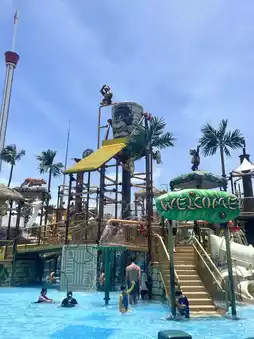 There are so many activities in the park that you can’t even play them all! If you like excitement, you must try the big slide. It flies down from a high place, and the moment you rush into the water, the water splashes everywhere and your adrenaline soars! There is also a wave pool, with waves of artificial waves coming, it feels like you are in the sea, swaying with the waves, it's so exciting!