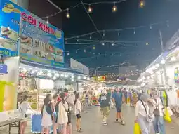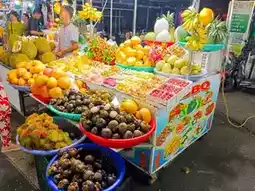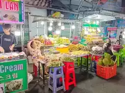 Phu Quoc Night Market is a bustling spot on Phu Quoc Island where visitors can stroll around and enjoy a variety of food, fresh seafood, fruits, ice cream, and flavored coated nuts. The market is lined with shops on both sides of the street, offering similar items and attracting customers by calling out or offering samples to make purchasing decisions easier. The sales approach is excellent.