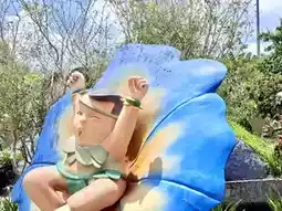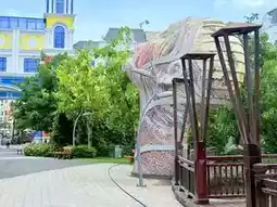 Tucked inside Grand World Phu Quoc lies a hidden photo gem — a fantasy-style flower playground perfect for all ages! Towering structures are covered in giant artificial blooms, complete with a curvy white tube slide and a rope bridge connecting floral towers. It’s like stepping into a cartoon garden!