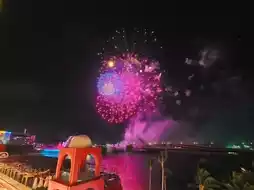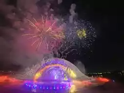 Afterward, we went to the Ocean Kiss Theater to watch a show and fireworks. It's best to arrive early to secure a seat, preferably higher up, as sitting lower means facing the bright projection lights directly, which can be dazzling. This was the closest I’ve ever been to fireworks, and it was truly breathtaking!