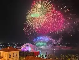 We originally booked a day tour to go island-hopping, but it was canceled due to strong winds. With no plans, we checked into La Festa Hotel early. This hotel is a must-stay for those wanting to watch fireworks in Phu Quoc. Although pricier, it offers the best view and proximity to the fireworks in Sunset Town.