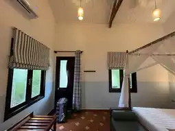 Here’s a review of Cassia Cottage, located in central Phu Quoc. The Garden Bungalow had a large bed and a bathroom, and it was very clean. A unique feature was the welcome fruits—two bananas and two mangosteens. Despite being an eco-friendly accommodation, which often raises concerns about bugs, there wasn’t a single bug inside the room. Its central location made it convenient to visit nearby spots like King Kong Mart and the popular Meo Kitchen restaurant.