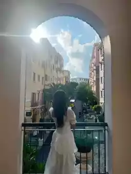 The sun is setting over the sea in Sunset Town, casting golden rays across every corner. The orange and cream-colored Mediterranean-style buildings line the streets, creating an atmosphere filled with warmth and romance.