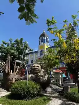 - Stone figures sitting in lotus pose — like they’ve found zen before the rest of us