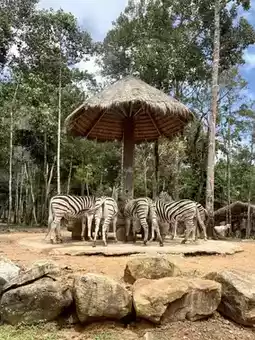 Vinwonders Safari Park in Phu Quoc Island is the largest semi-wild animal park in Vietnam. It is located in Glyn, North of the island, covering an area of 380 hectares. It raises more than 150 species and more than 3,000 animals, including Bengal tigers, white lions, rhinos, giraffes, etc., living in a park that simulates a natural environment.