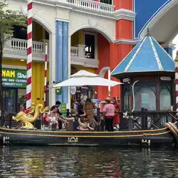 At Grand World Phu Quoc’s "Venice River" (Lake of Love), I boarded a traditional-style boat and drifted through a shimmering canal tunnel flanked by pastel-hued European buildings—complete with arched bridges and romantic balconies. The canal is an artistic replica of Venice’s waterways, designed with meticulous detail.