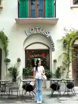 📍Lotus Cafe: A cute cafe with delicious and affordable drinks. A popular photo spot is the front of the cafe. Both the shop sign and the building are visible.