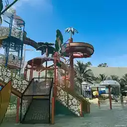 🏖️ This water park isn't that big, compared to Xiang Tau Water Park. This time, we found the entire area painted, which was a bit confusing. 😄😄 There's a small bar for food, locker rooms, and the water play equipment is very clean, so no need to worry. Another advantage of this water park is that it's not crowded, so you can have fun with everything. I'd like to commend the kids' play area, which is very well done. They have lifeguards to guide the kids and keep an eye on the surrounding area. 👍🏻👍🏻 It's recommended to wear appropriate swimwear and pants without buttons for the thrilling slides (pants with buttons are not allowed). Today, we played the snake-like ride. At first, it looked scary. I thought it wouldn't be fun, but after trying it, I almost had a heart attack. 😂😂 The water park staff at this park checks your weight before every ride. My friend and I weigh under 160 kilograms, which felt like a superficial check. But if you're going to the water park, be sure to check it out! 😄😃