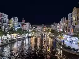 One of the most romantic highlights of Grand World Phu Quoc is the Venetian gondola ride. Inspired by Venice, Italy, this attraction features winding artificial canals flanked by colorful European-style buildings that reflect beautifully on the water, making visitors feel as if they've been transported to a charming European town.