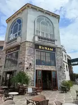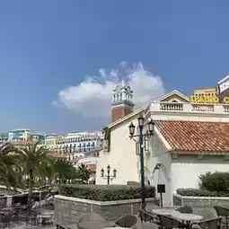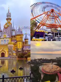 Walk around Sunset Town, a European-style beachside town, and take photos with the pastel-colored buildings. 🏘