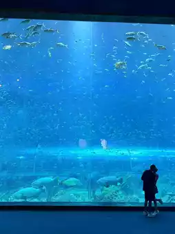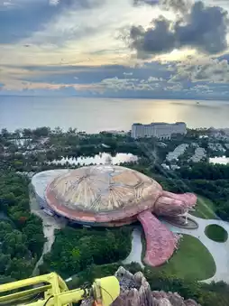 Unfortunately, we got stuck in the rain for a long time at a coffee shop. We had lunch, and when the rain stopped, we took the cable car across to the water park. We enjoyed the view along the way.