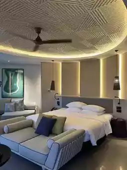 I also tried the afternoon tea, famous for its mango shaved ice. The dessert selection was generous and delicious, which was satisfying. It's a bit pricey, but it's well worth it. The private beach is about a 7-minute walk from the lobby. On hot days, you can ask for a car and they'll take you there right away, which is super convenient.
