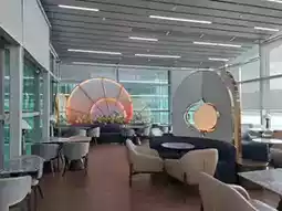 Waiting for my flight at Phu Quoc Airport, I stepped into THE Sens Lounge and was immediately captivated by its soaring ceilings and modern design. Large floor-to-ceiling windows let in natural light, and the seating area is comfortable and spacious. The artistic arc lighting creates an elegant and relaxing atmosphere.