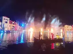 On the Love Lake of Grand World Phu Quoc, a spectacular live-action performance titled "The Colors of Venice" takes place every night. It's one of the most captivating attractions of this "city that never sleeps." More than just a performance, this show is an immersive visual, auditory, and emotional experience, showcasing the romance and mystery of Venice, Italy, in an unprecedented way. The core of "The Colors of Venice" is the seamless transposition of the charm of Italy's water city to Phu Quoc Island. Using the Love Lake as its natural stage, an exquisite floating stage, flanked by European-style buildings, and magnificent lighting create a dreamlike setting. Performers, dressed in medieval costumes and intricate Venetian masks, dance to the rhythm of light and music, showcasing the passion and mystery of the Venetian Carnival. This show is unique in its ingenious use of water, light, and shadow. Performers gracefully paddle gondolas across the water, accompanied by moving music, creating a romantic atmosphere. "Colors of Venice" is not only a spectacular performance at Phu Quoc World, but also a profound experience of aesthetics, culture, and emotion. If you're seeking a romantic and artistic destination on Phu Quoc Island at night, this magnificent dance on the Love Lake is a must-see.