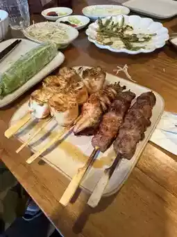 • Grilled pork skewers: Charcoal flavor, juicy meat