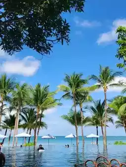 Both hotels are located in the golden location of Phu Quoc Island. The Emerald Bay Marriott Hotel (address: Bai Khem, An Thoi, Phu Quoc) features a private beach and stunning pool, and everything around Sheraton Phu Quoc Island Long Beach Resort (address: Dương Tơ, Phú Quốc) is a choice for leisure vacations, sooo chill! 🛌The hotel's facilities and buffet are great, you can relax all day without going out ~
