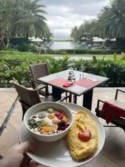 🏊♀️ There are three swimming pools, and the wooden sunbeds nearby are super comfy. The staff proactively provide fresh towels, and you can also request beach slippers 👣. Plus, you can borrow a bicycle for free for an hour to explore the surroundings 🚲✨. The overall vacation vibe is fantastic, and the atmosphere is super chill.