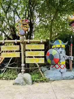 Heading to VinWonders Phu Quoc next? Get hyped for adventure—yep, it’s THAT kind of theme park! 🎢 Make sure you check out the iconic Viking statue guarding the entrance (perfect Insta moment right there), plus fun signposts pointing to all sorts of wild rides and attractions.