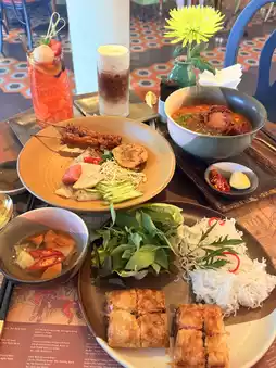 Environment: The restaurant is full of Vietnamese nostalgic style, simple and comfortable decoration, suitable for families or friends gathering. The squid hot pot uses fresh squid and is served with a spicy soup. It is full of freshness and basically every table will order it! The ribs are crispy on the outside and tender on the inside. The lemongrass chicken meat is smooth and tender, which goes well with rice.