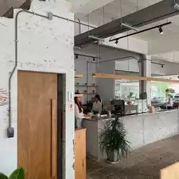 Decorated in a loft style with exposed concrete, interspersed with green plants and full glass windows, this cafe has space for working, chatting, and a large menu of food and drinks. Each one is delicious.