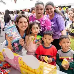 This year, Sri Sunthon Municipality organized the event at Khum Nam Bang Maruan as usual. Mayor Aum and the group dressed in school uniforms to hand out gifts to the children. This year, there were so many gifts. I wanted to go and queue to receive them. 5555 There were also many delicious foods, and of course, Brother Jeans went to wait in line to receive Tokyo snacks. ๐คฃ