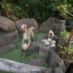 18-hole mini-golf decorated in a Jurassic era atmosphere, surrounded by many species of life-sized dinosaurs along the way (the dinosaurs here move lively with cutting-edge technology). There is also a simulated volcano with light, color, and sound effects that create an exciting and thrilling atmosphere throughout the game.