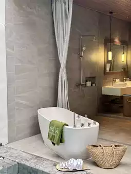 🏠Room: There are only two types of rooms, with or without an outdoor pool, but each room has an outdoor bathtub 🛁. All are detached villas, the rooms are super large, very private, and the overall style is simple and clean, with a large and comfortable bed.