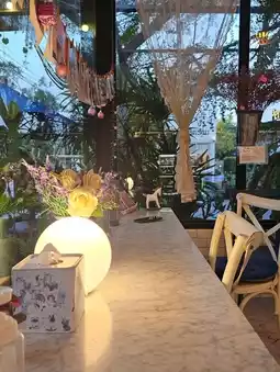 It is a cafe near the airport. There is accommodation at the back. The cafe is decorated in an English style. There are photo spots both outside and inside. Every corner is beautiful. It is comfortable and shady. It is a cafe that has been open for a long time. But it has been renovated to be more beautiful all the time.