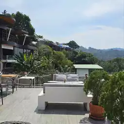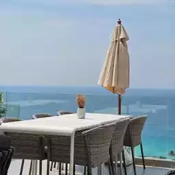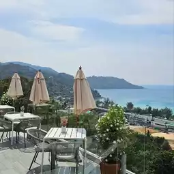 This is a café and restaurant where you can relax and enjoy the beautiful sea view. It's also a great spot to watch the sunset. The view is stunning, and the restaurant is luxuriously decorated. There is only an outdoor seating area, which has two floors. The atmosphere is great, and there are plenty of photo opportunities.