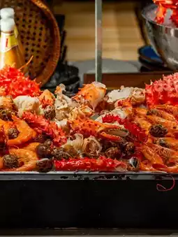Only 1,250 baht per person (Net) can eat all you can with Alaskan crab legs at a great value, whether steamed or grilled, along with a variety of premium dishes that serve fresh, quality ingredients for you to choose from with the concept of choosing fresh products from the market yourself and bringing them to our chef team to cook fresh to your liking and ready to serve dish by dish, from the stove to the table in just a few minutes. Plus unlimited soft drinks.