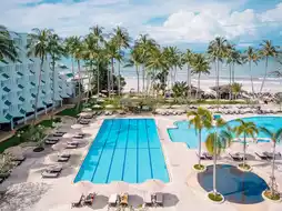 Relax in Phuket at the luxurious Le Meridien Phuket Beach Resort, a 5-star resort located on the serene and private Karon Noi Beach. The resort features two large swimming pools and offers a variety of activities such as a golf driving range, mini-golf course, tennis courts, and an award-winning spa.