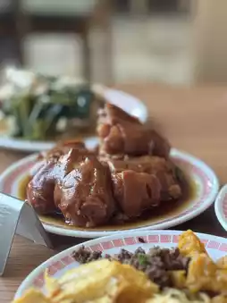 The menu here is diverse and covers local Phuket dishes such as stir-fried pork with preserved mustard greens, pork crackling, pork stir-fried with pickled garlic, stewed mustard greens, braised tofu, stir-fried morning glory and stir-fried kale with salted fish. There are also various salads and desserts to choose from. Herbal drinks are also included in the buffet price.