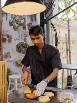 Start with Phuket's signature dishes from morning to night, including dim sum, Hokkien fried noodles, pork bone noodles, Phuket-style Shake noodles, Kui noodles, Phuket fish cakes, hamburgers, pork satay, papaya salad, soy milk, iced tea, coffee, and many more a la carte menus to choose from.