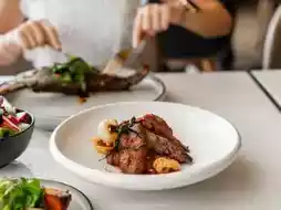 - IBERCO PORK PLUMA, grilled pork, served with nam phrik num and pork rinds in western style