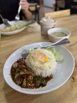 Kot Poo is truly a paradise for crab lovers! The must-try menu is the crab fried rice, which has a delicious flavor. The crab meat is firm and mixed with the fragrant fried rice. There is also the crab basil stir-fry, which is a perfect combination. The spiciness of the basil and the sweetness of the crab meat go well together. There are also many types of crab meat dishes to choose from that are equally delicious. Each dish is packed with quality crab meat. I guarantee that if you are a crab lover, you must come and try it. You will love it!