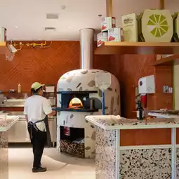 In addition to the delicious pizza, the atmosphere inside the shop is also warm. It's an open kitchen, so we can see the chef's pizza making moves. The smell of pizza from the oven wafts to our noses, it's very fragrant. And this restaurant is also located on the beach. ๐ฅฐ