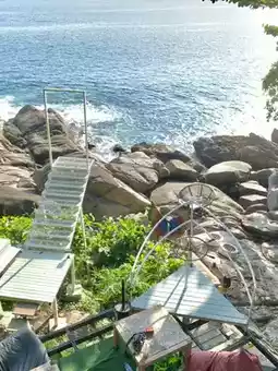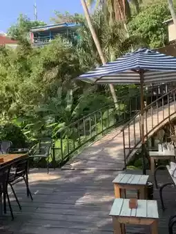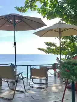 Cliff cafe with a wooden bridge that you can walk down to. There are both food, drinks, and desserts here. Anyone who likes a sea view, cool breeze, and a place to chill, I recommend this place. It's been open for a short time. It's a new cafe. If you've never been there, stop by to take some beautiful photos. There are also photo spots. 🏝️📸