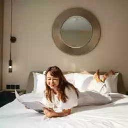๐ฒ ๐ฃ๐ผ๐ผ๐น ๐ฉ๐ถ๐ฒ๐ room. The room is spacious with an outdoor balcony that overlooks the swimming pool. The bathroom has separate dry and wet zones. The toilet is automatic and there is a bathtub for you to lie down and enjoy the view. The bed is very comfortable to sleep in. ๐ฅฐ
