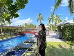 This place is on the beach, but the tide is very low. If you want to swim in the sea, you have to walk quite far. When I stayed, I never made it in time for high tide because I woke up late. 😁 You can see planes taking off all the time at the lobby and it is close to Phuket Airport.