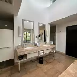 The room is much larger than I thought, clean, and there are welcome snacks. The bathroom is divided into sections. The shower area may be a bit dark. The shampoo, soap, and conditioner are very fragrant.
