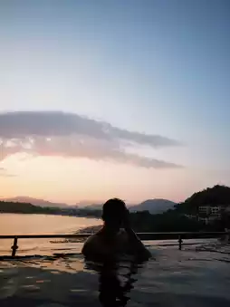 There are many swimming pool areas, and every area has a very good view. You can take pictures from every angle. The infinity pool looks out over the bay. Sometimes there are hardly any people in the pool, so you get a lot of privacy.