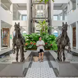 The decoration style here is a modern Thai style that combines Phuket perfectly, especially in the lobby and walkways that reflect the scent of Sino-Portuguese architecture. ๐๏ธ With a blue swimming pool to add relaxation In front of the resort, there is also a unique high glass dome, perfect for taking pictures, especially in the evening when the sun shines. โ๏ธ