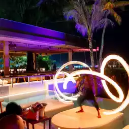 FUGA Beach Club is a chic beach club located on Patong Beach, Phuket. It stands out with its bohemian-style decor in white and brown tones, offering a relaxed atmosphere perfect for unwinding and taking photos. The club serves a variety of food and drinks, including pizza and cocktails. While the prices are relatively high, they are worth it for the stunning sea views and ambiance. Open daily from 8:00 AM to midnight, the club also provides convenient parking. It's an ideal spot for those looking to chill by the sea and enjoy a beautiful sunset view.