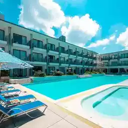 It's a hotel with a very beautiful swimming pool, great photos from every angle