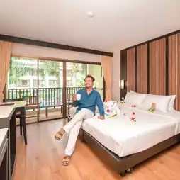 We recommend the Deluxe Room, which has a balcony and can see the beautiful view of the swimming pool.