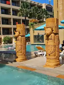 Pamookkoo Adventure Pool is a large swimming pool located in the center of the resort. There are 2 large pools connected together and there are large slides with 3 levels of height to choose from. The shape of the slide is similar to the entrance to an ancient fortress. The highest slide is as high as a 4-story building. There are 2 more pool areas for small children that are separated for safety and suitable for all families.